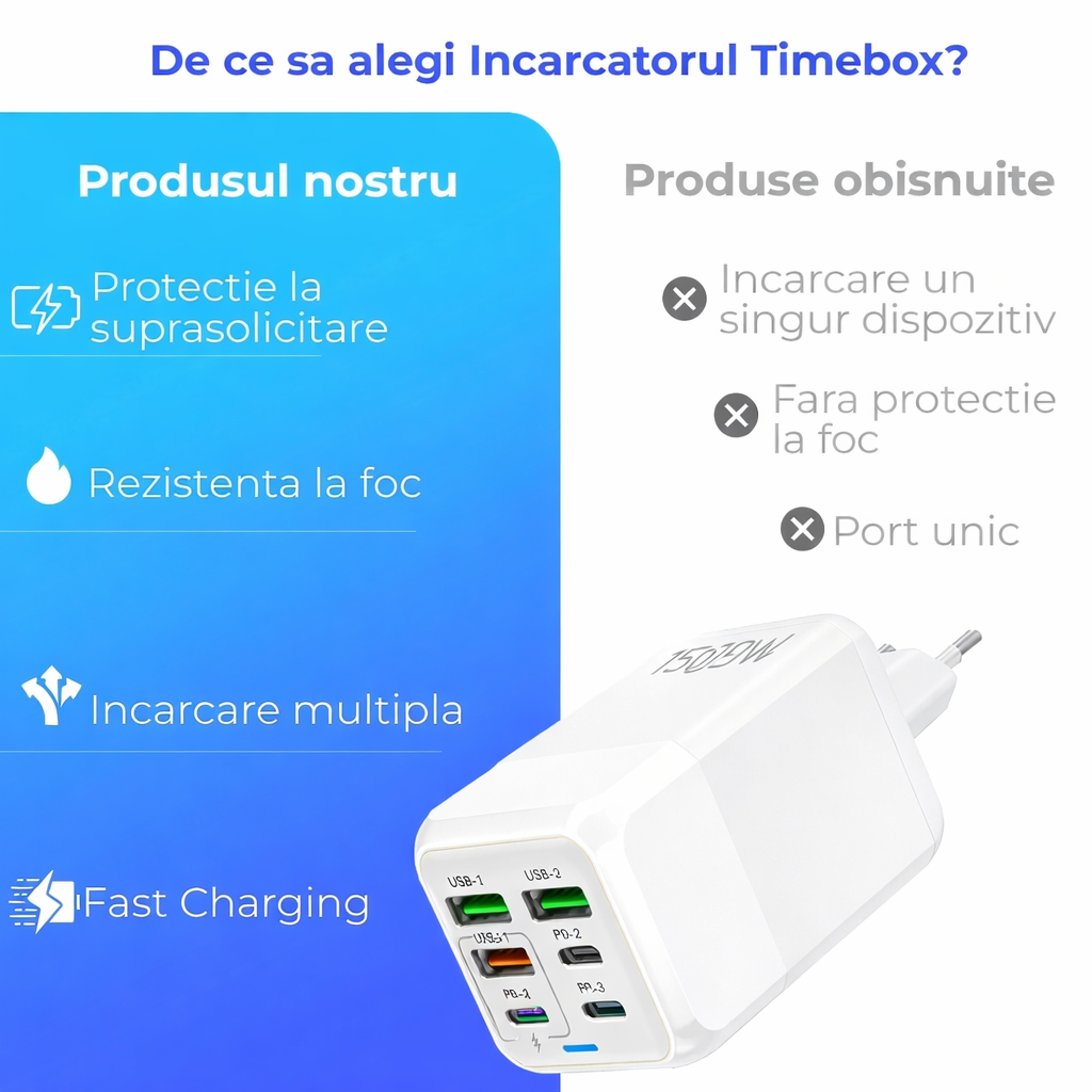 1 x Incarcator retea 150W multiport