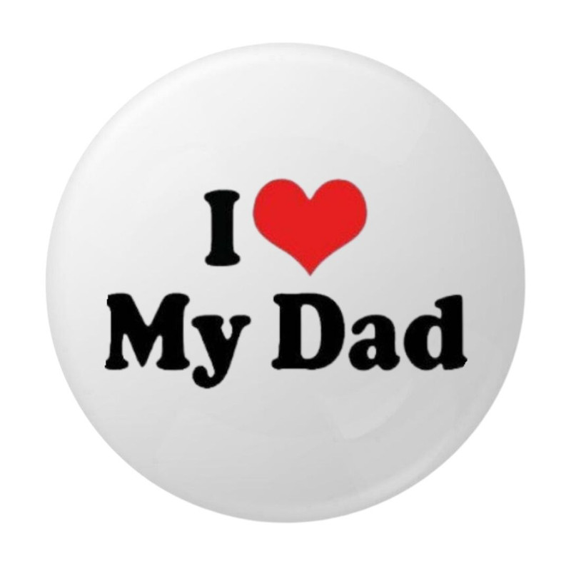 Insigna rotunda I Love My Dad este un accesoriu simbolic dedicat relatiei speciale dintre copil si tata. Designul este simplu si expresiv, realizat pe fundal alb, cu text negru clar si o inimioara rosie care evidentiaza mesajul central.