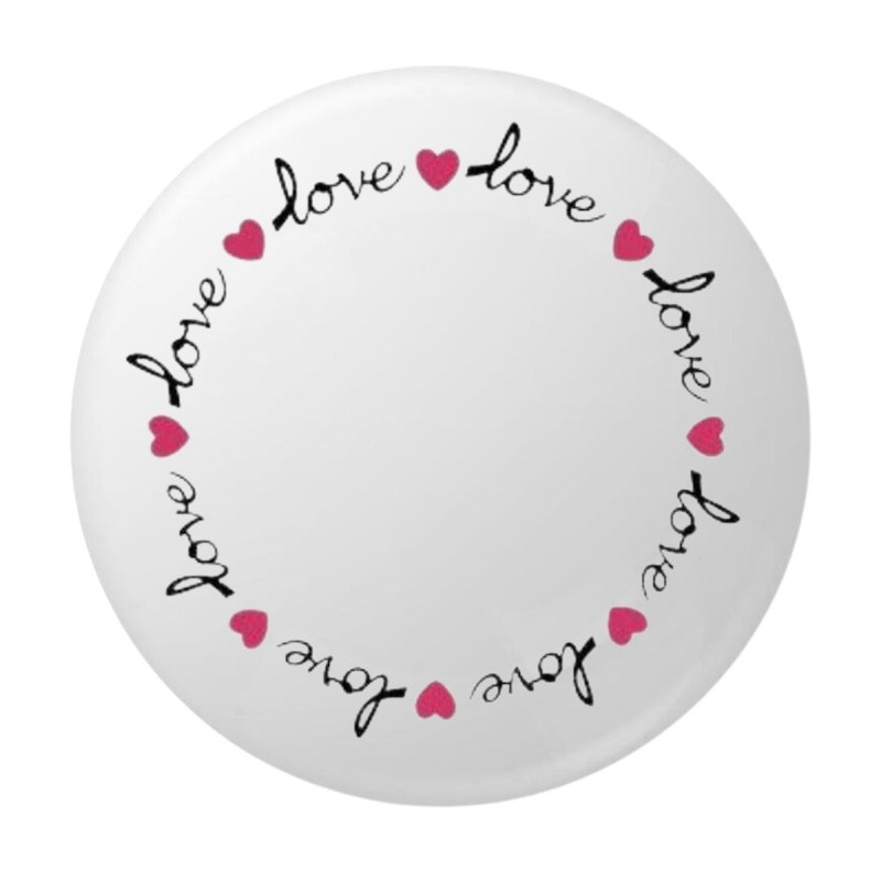 Aceasta insigna Love de 58 mm este ideala pentru cei care doresc un accesoriu romantic si vizibil. Dispunerea circulara a textului cursiv si a inimioarelor roz ofera un design echilibrat si modern.