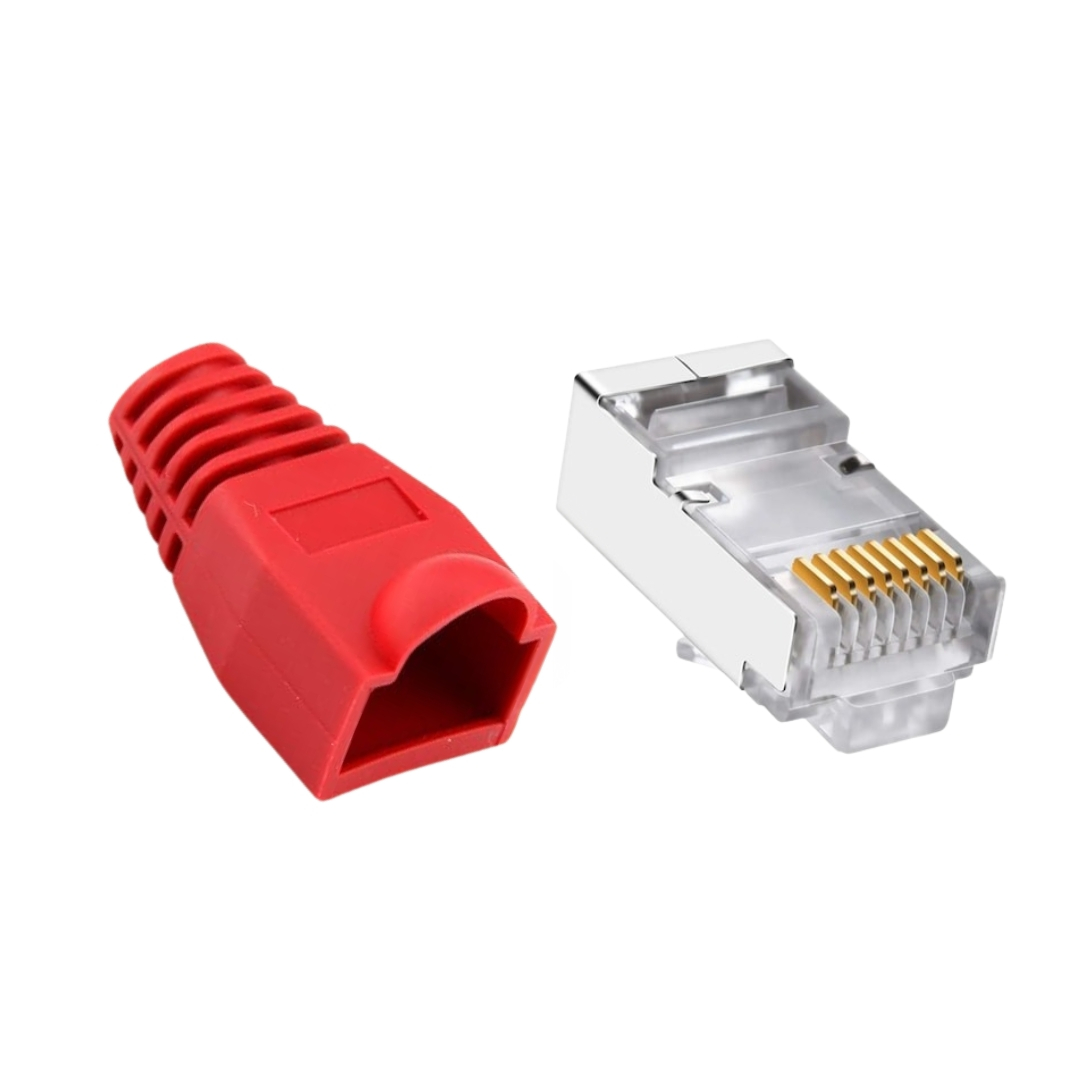 Set 30 x mufa ecranata + manson de protectie, RJ45, CAT5 CAT6, 8 pini 8P8C, rosu