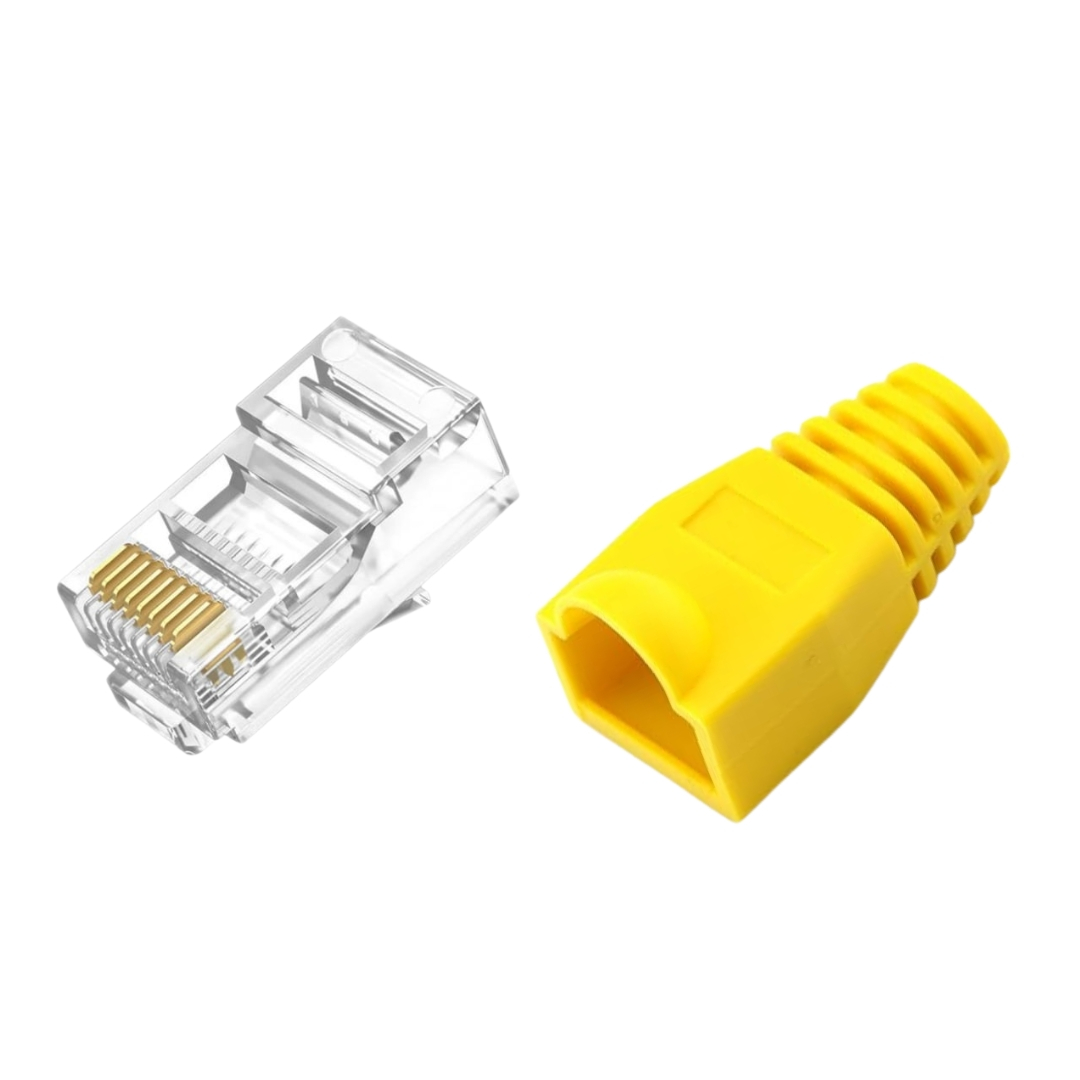 Set 30 x mufa + manson de protectie, RJ45, CAT5 CAT6, 8 pini 8P8C, galben