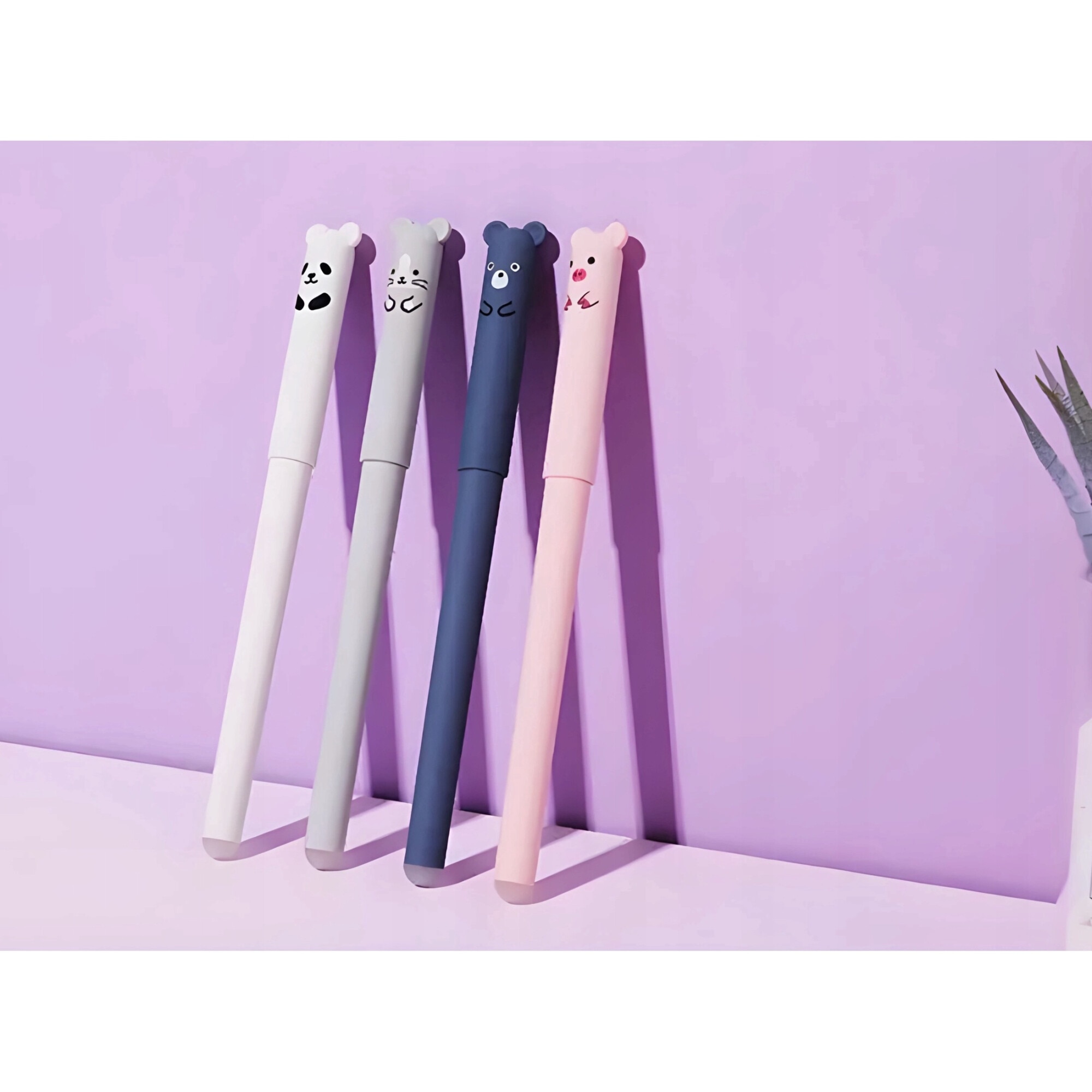 Set 4 pixuri scrie-sterge cu modele de animalute, 20 rezerve si 2 radiere – scriere fara griji, perfect pentru scoala si birou