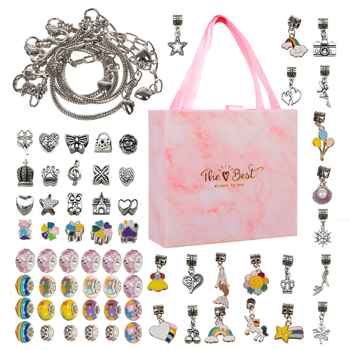 Acest set creativ pentru realizarea bratarilor si colierelor este conceput pentru copiii care iubesc culoarea, creatia si activitatile manuale. Cu un total de 70 de piese variate, setul ofera libertate deplina de combinare a margelelor, pandantivelor si accesoriilor, permitand realizarea a trei bratari si trei coliere unice. Fiecare element este adaptat pentru mainile copiilor, fiind usor de manevrat si sigur pentru utilizare zilnica, astfel incat joaca devine o experienta relaxanta si educativa.