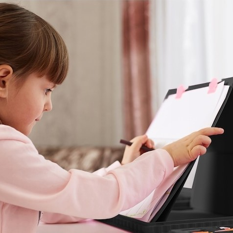 Toate accesoriile sunt organizate intr-o gentuta portabila, de culoare neagra, prevazuta cu maner si compartimente dedicate, astfel incat fiecare piesa sa fie usor accesibila si bine protejata. Suportul pentru coli integrat permite desenarea confortabila si organizata, indiferent de locul de utilizare.