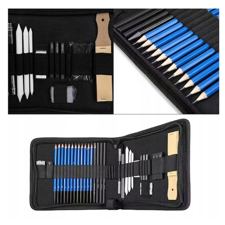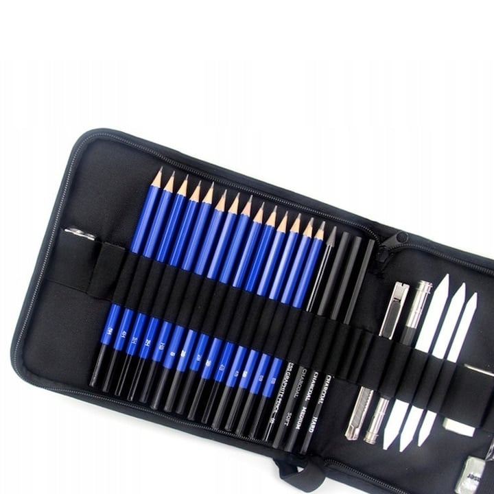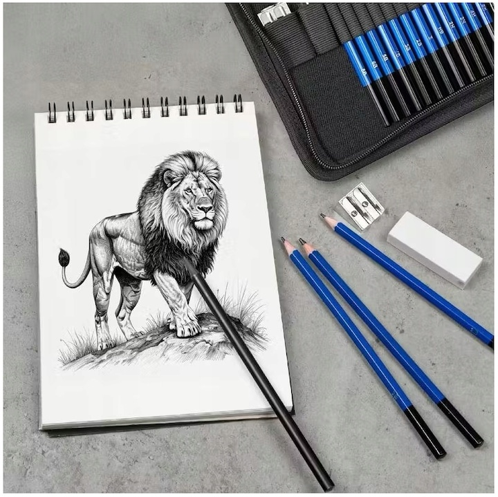 Acest set profesional pentru schite in creion cu 35 de piese este conceput pentru a oferi libertate creativa si control precis in desen, contur, umbrire si clarobscur. Este potrivit atat pentru incepatori, cat si pentru studenti la arte sau artisti experimentati care doresc un kit complet, gata de utilizare.