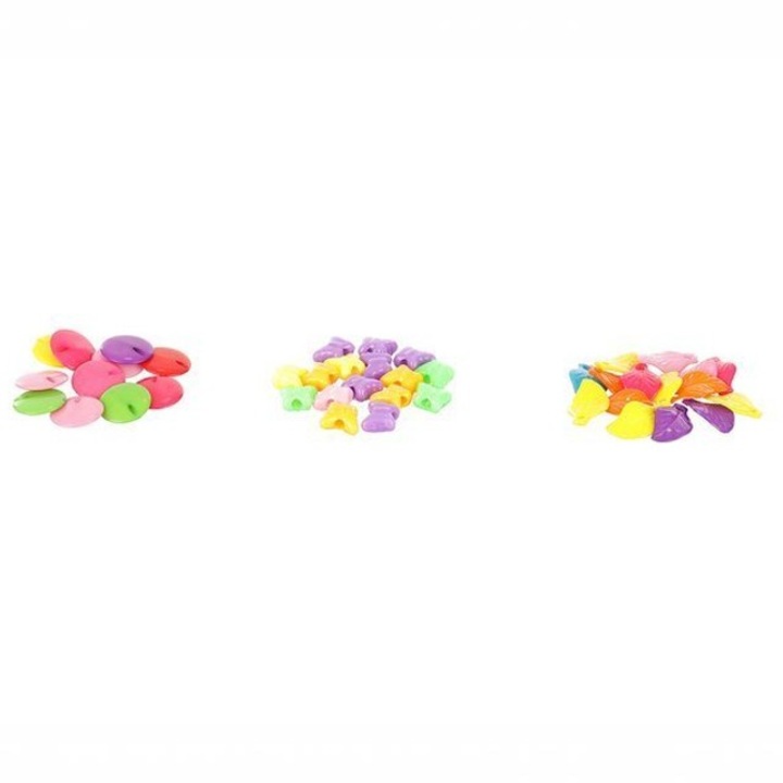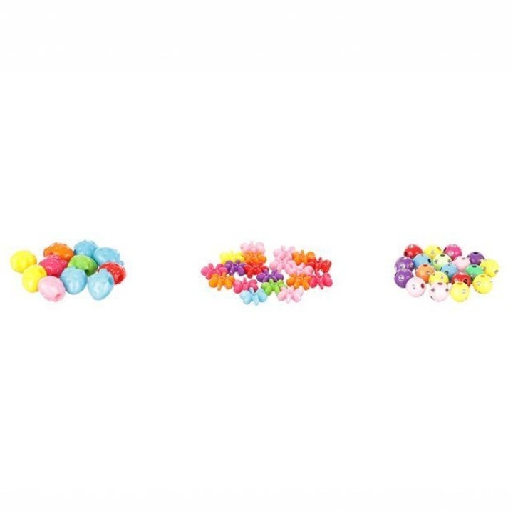 Set creatie bijuterii pentru fete, 11 tipuri de margele colorate, pentru bratari, inele si lantisoare, varsta 6+, multicolor