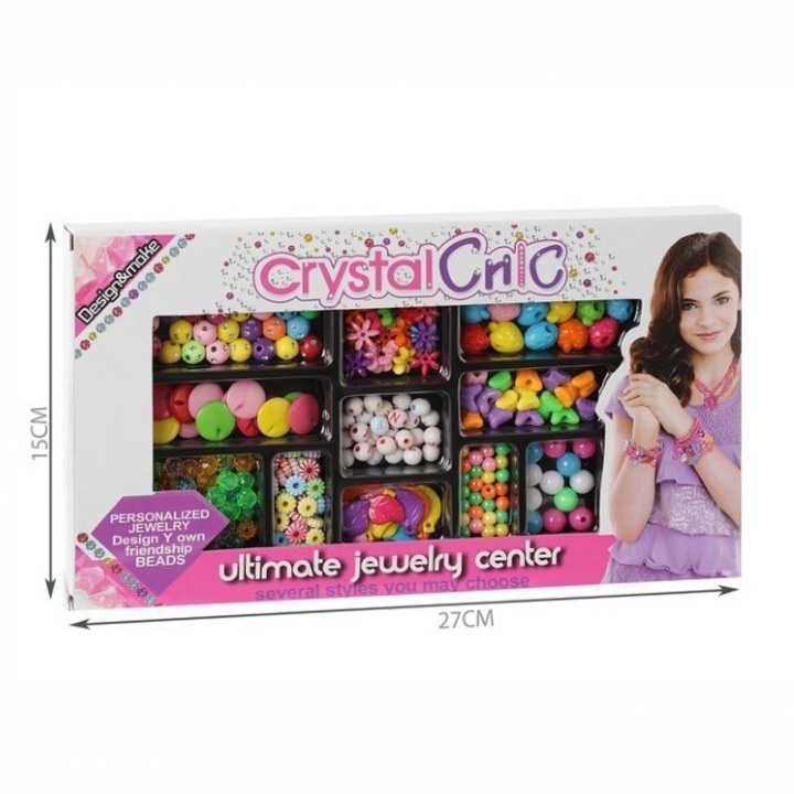 Set creatie bijuterii pentru fete, 11 tipuri de margele colorate, pentru bratari, inele si lantisoare, varsta 6+, multicolor este conceput pentru a oferi copiilor o experienta creativa completa, combinand joaca, imaginatia si dezvoltarea abilitatilor practice. Setul include 11 tipuri diferite de margele, in culori vii si forme variate, care permit realizarea unor bijuterii personalizate precum bratari, inele sau lantisoare, adaptate stilului fiecarui copil.