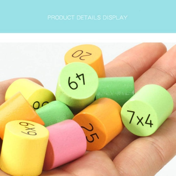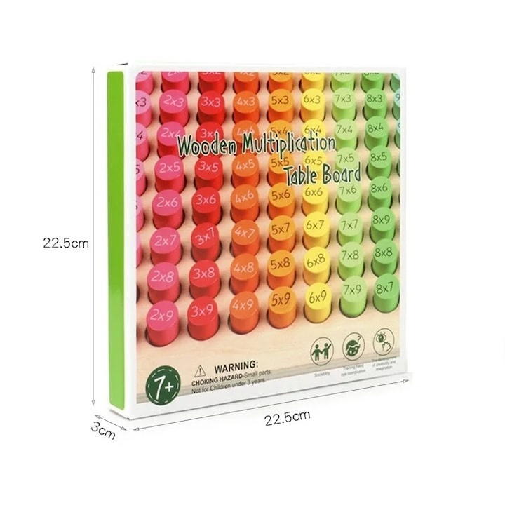 Jocul educativ din lemn pentru invatarea tablei inmultirii este un instrument excelent pentru copiii de peste 7 ani, oferind o metoda moderna, vizuala si interactiva de a intelege operatia de inmultire. Piesele din lemn sunt imprimate pe fata cu exercitii si pe verso cu rezultate, iar fiecare sir de inmultiri are o culoare distincta, pentru a preveni incurcarea elementelor si pentru a facilita asimilarea rapida.