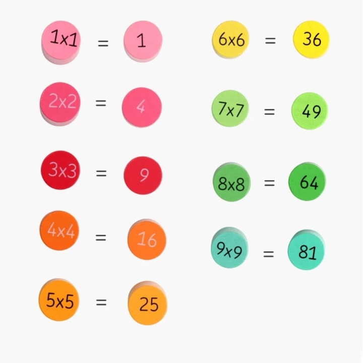 Joc educativ din lemn pentru invatarea tablei inmultirii, 22x22 cm, piese imprimate fata-verso, culori diferentiate, dezvoltare logica si memorie, +7 ani