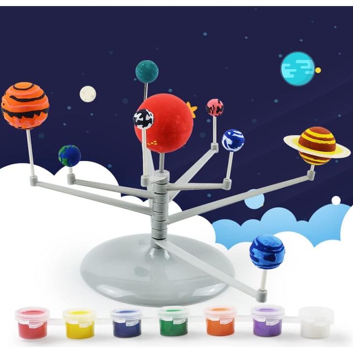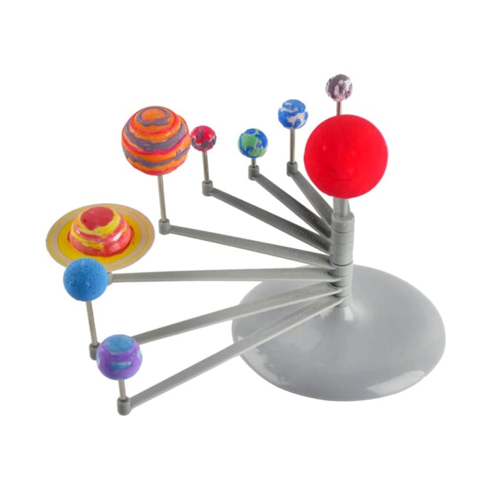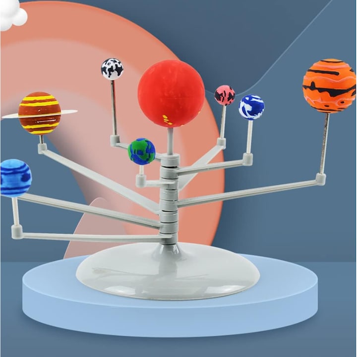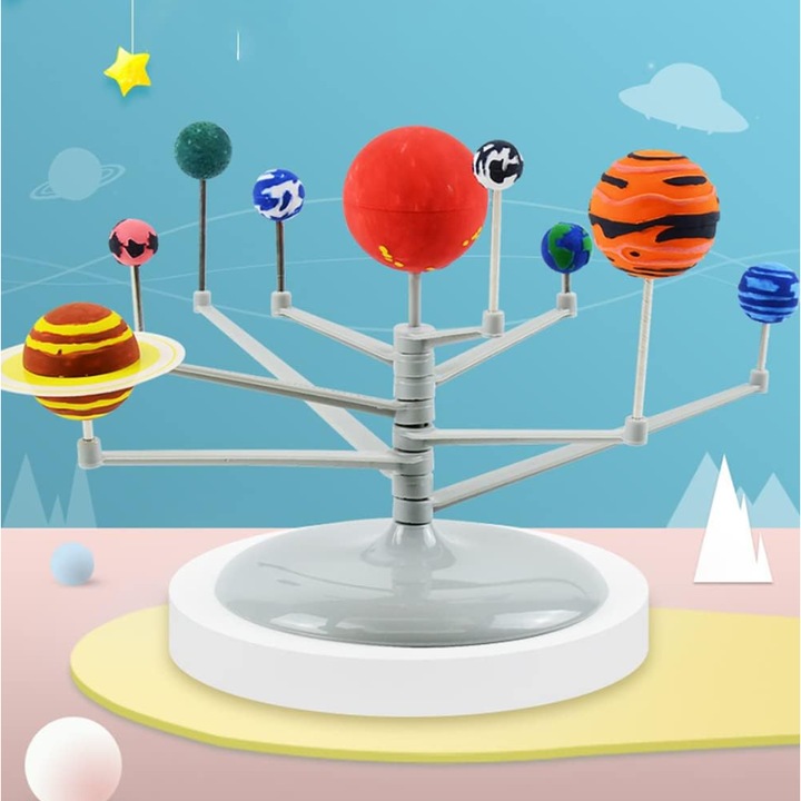 Copiii pot asambla manual structura planetara, pot picta planetele in culorile preferate si pot observa, intr-o forma simplificata, cum sunt dispuse corpurile ceresti in jurul Soarelui. Fiecare brat al suportului este inscriptionat cu informatii ce ajuta la memorarea rapida a planetelor si la intelegerea distantei lor fata de Soare, facand din acest set o resursa educationala valoroasa pentru orice copil interesat de astronomie.