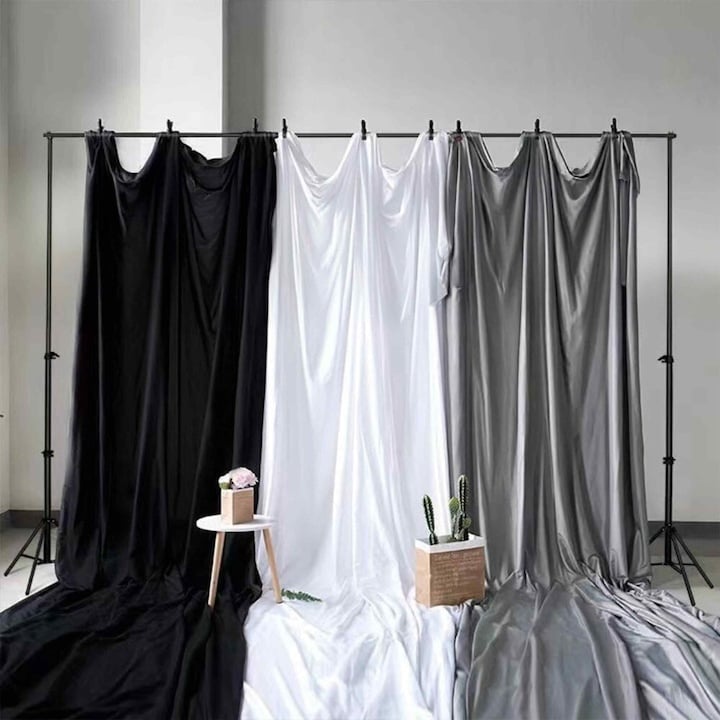 Structura modulara permite ajustarea usoara a inaltimii si latimii, astfel incat fundalul sa fie adaptat perfect scenei dorite. Trepiedele reglabile asigura sustinere sigura, iar bara transversala segmentata permite extinderea pana la dimensiuni generoase, ideale pentru portrete, fotografie de produs, filmari sau live streaming.