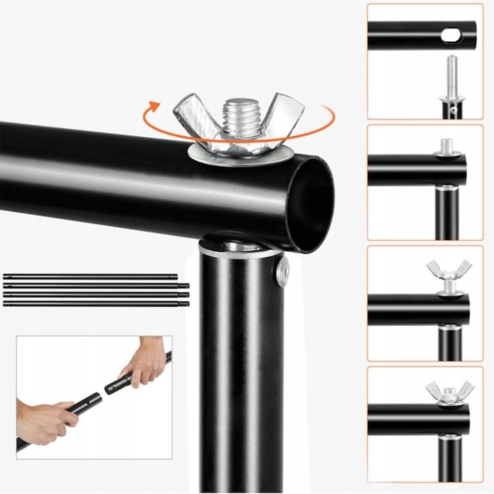 Acest suport portabil pentru fundal foto este o solutie practica si eficienta pentru realizarea sedintelor foto si video in conditii profesionale, atat in studio, cat si in aer liber. Sistemul este conceput pentru a oferi stabilitate, flexibilitate si montaj rapid, fiind potrivit pentru fotografi amatori, creatori de continut, comercianti online sau profesionisti din domeniul foto-video.