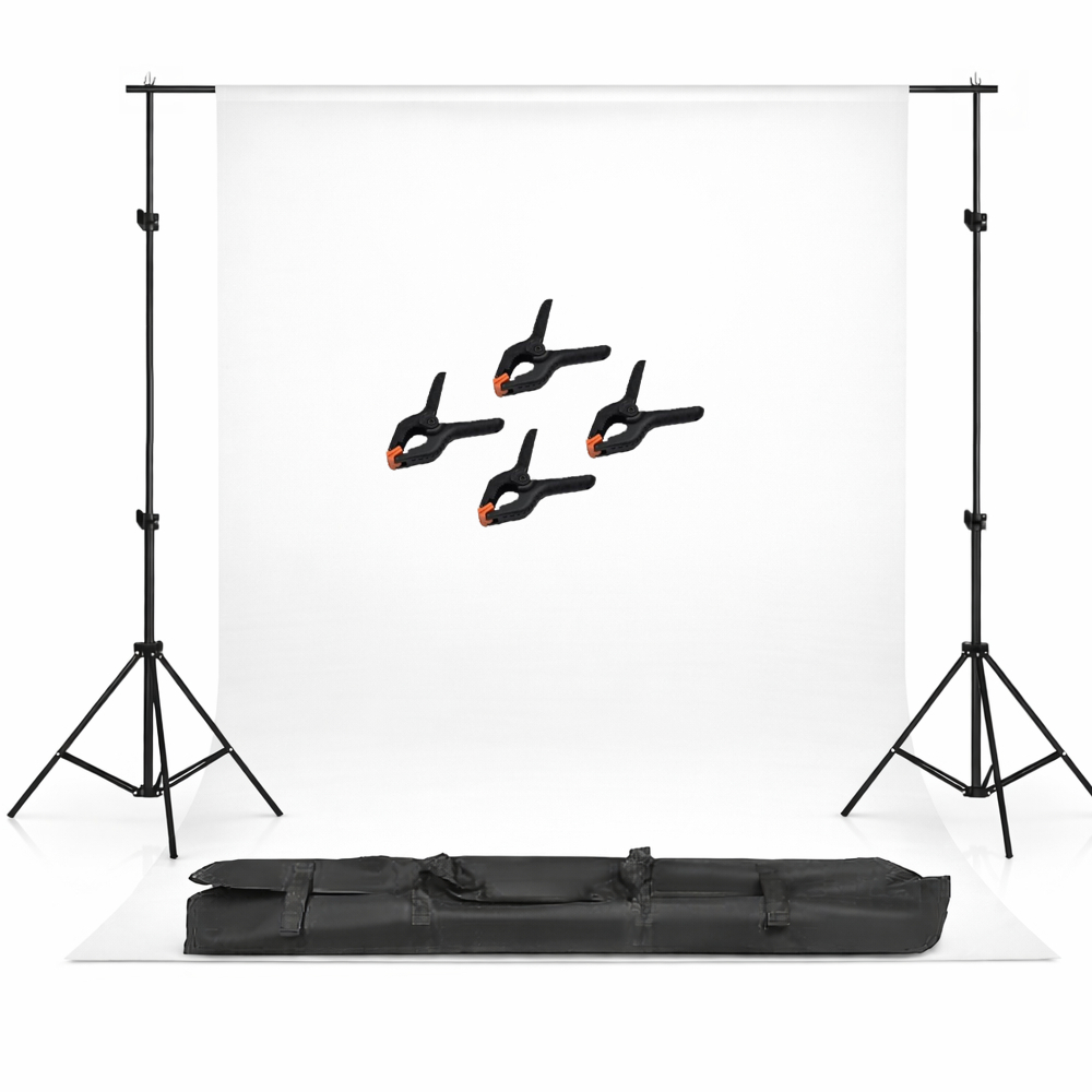 Kitul studio cu suport pentru fundal alb 2x3 m este o solutie versatila pentru fotografie si filmare profesionala. Fundalul alb este ideal pentru portrete, fotografie de produs, cadre comerciale sau continut online, oferind un aspect curat, luminos si profesional.