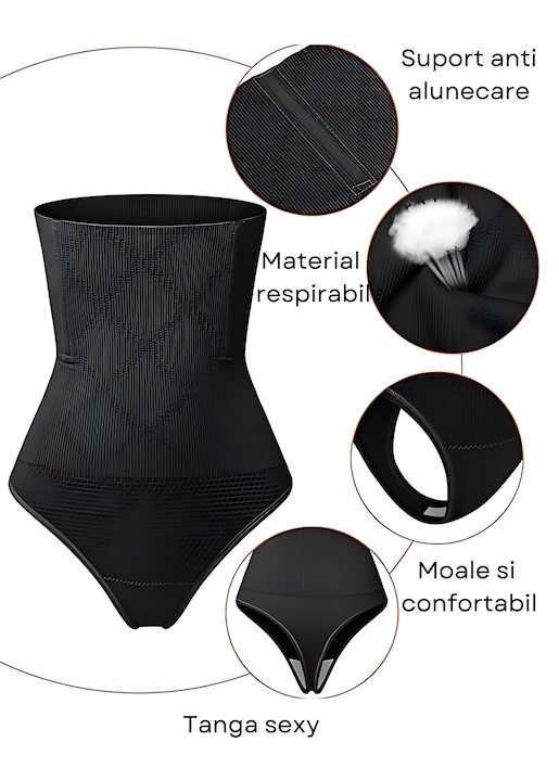Beneficiile principale includ: subtierea taliei, control abdomen, lifting posterior, sustinere 360°, prevenirea rulării, fiind potrivit pentru orice tip de tinuta.