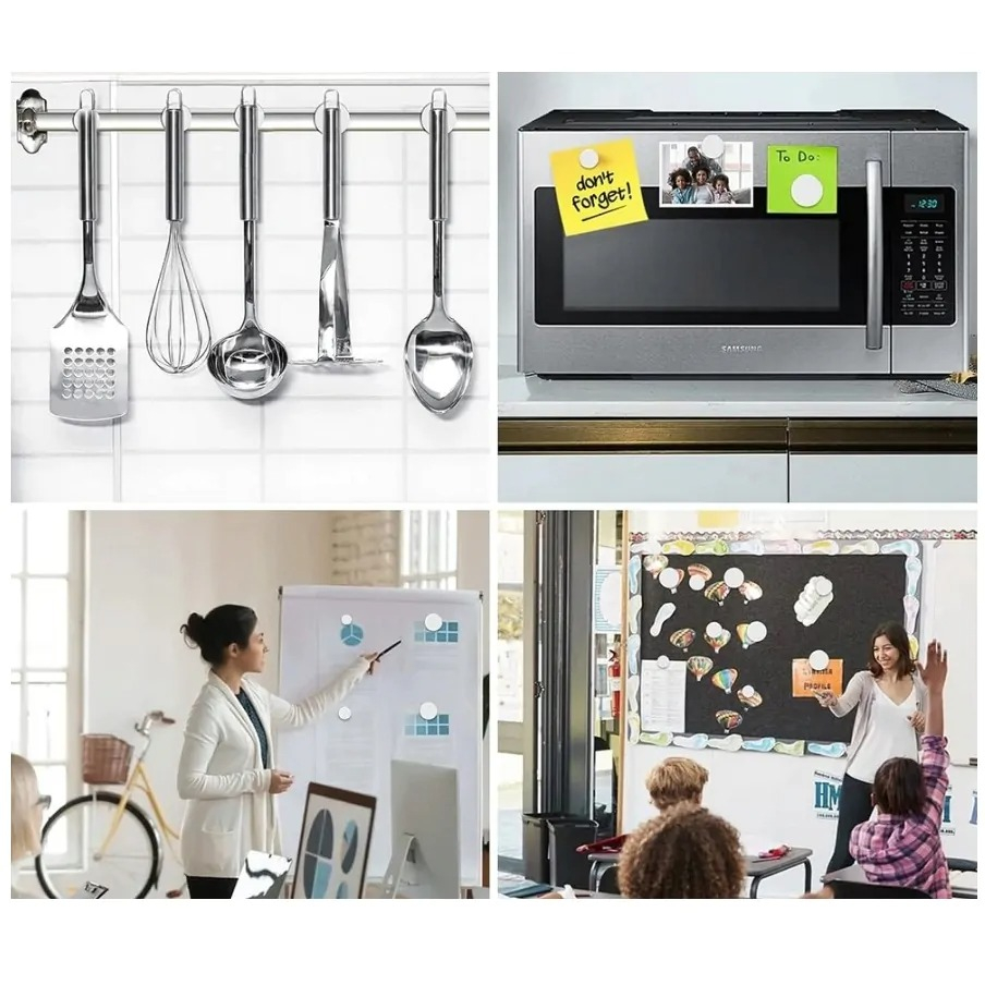 Fiecare magnet este prevăzut cu adeziv profesional 3M, care asigură o fixare sigură, curată și durabilă pe orice suprafață netedă: metal, plastic, lemn, sticlă sau ceramică.