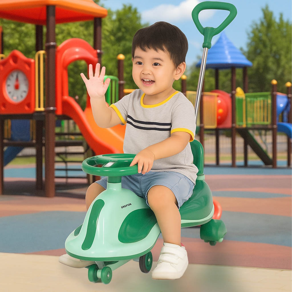 Mașinuța este prevăzută cu un mâner ergonomic de ghidare, ideal pentru părinți, permițând controlul direcției și al vitezei. Copilul se poate deplasa ușor folosind mișcarea naturală de balans sau rotirea volanului, dezvoltându-și astfel coordonarea, echilibrul și forța musculară.
