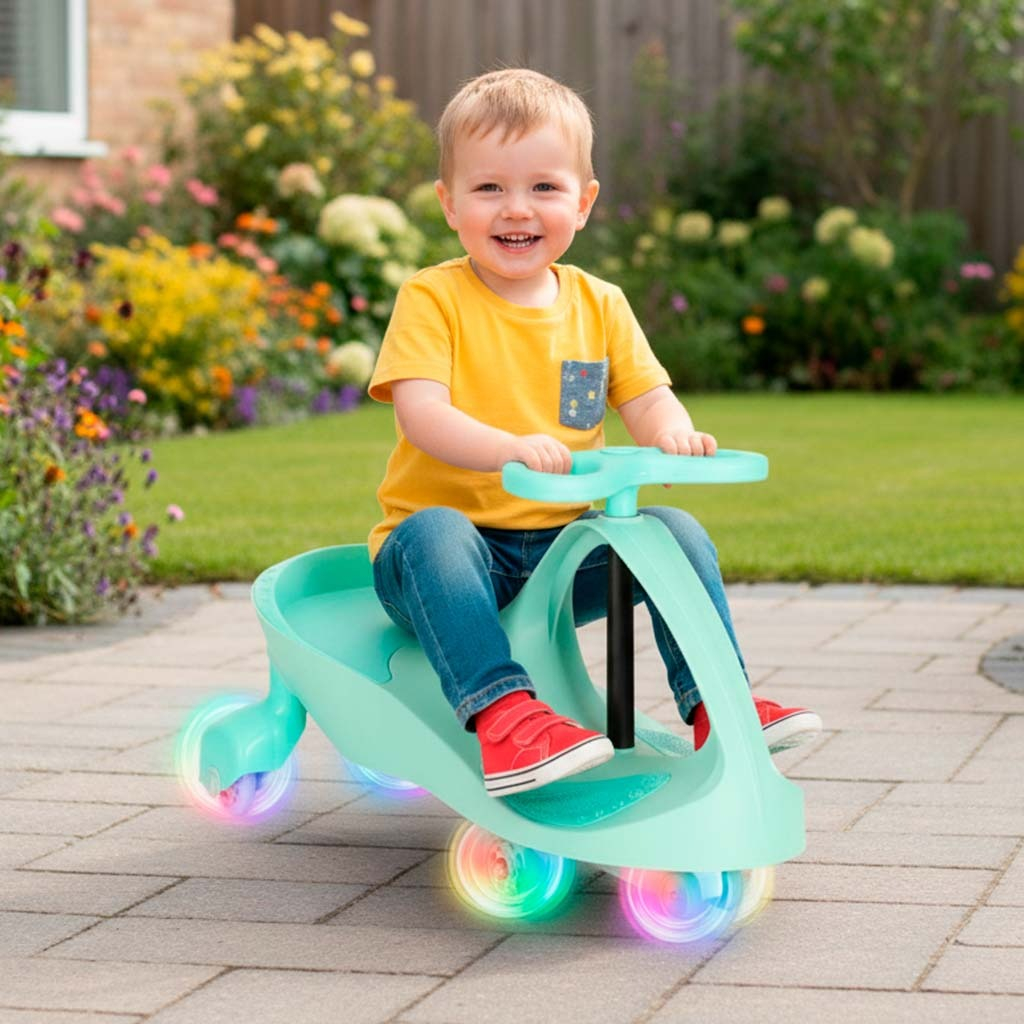 Funcționarea sa ingenioasă nu necesită pedale, lanț sau baterii – copilul controlează direcția prin mişcarea volanului, ceea ce face ca deplasarea să fie naturală, sigură și plină de amuzament. Roțile iluminate LED adaugă o notă spectaculoasă și vizibilitate crescută, atrăgând atenția celor mici și oferind o experiență de joacă captivantă.