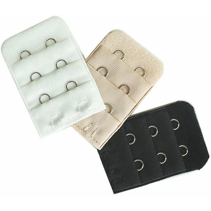 Set prelungire sutien, extensii cu 3 pozitii de prindere, 3 bucati, elastic, 5x3.2 cm, negru/crem/alb – solutie practica pentru marirea circumferintei sutienului