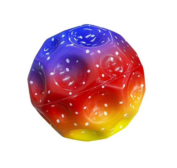 Mingea saltareata antistres in combinatie de culori rosu, mov si galben este o jucarie captivanta si energica, ideala pentru copii, dar si pentru momentele de relaxare ale adultilor. Designul sau unic, cu efect de gradient si puncte decorative, ofera un aspect modern si atractiv, stimuland interesul vizual si dorinta de interactiune.