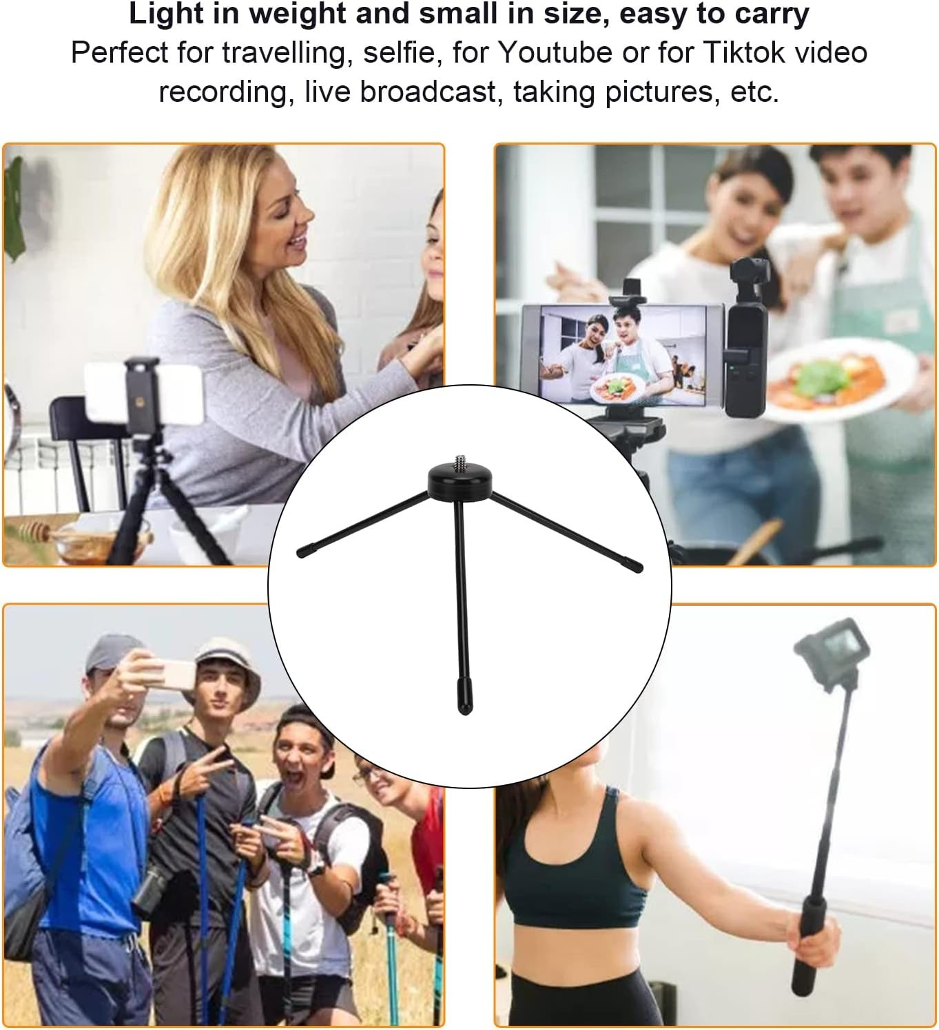Datorita dimensiunii compacte si stabilitatii oferite, mini trepiedul este potrivit pentru fotografie de produs, vlogging, streaming, filmari pentru TikTok, YouTube sau Instagram, dar si pentru apeluri video sau utilizare zilnica pe birou.
