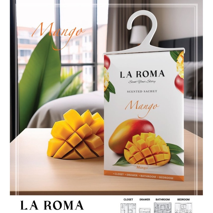 Acest saculet parfumat cu aroma intensa de mango este conceput pentru a aduce un parfum fructat, dulce si vibrant in spatiile tale personale. Inspirata de prospetimea fructelor tropicale, aroma de mango improspateaza eficient dulapurile, sifonierele, sertarele, bagajele sau interiorul masinii, oferind o senzatie placuta de curatenie si buna dispozitie.