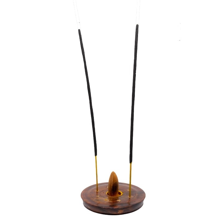 Realizat din lemn rezistent, suportul ofera o baza stabila pentru arderea betisoarelor si conurilor parfumate, contribuind la colectarea cenusii si protejarea suprafetelor. Este o alegere potrivita pentru utilizare zilnica, in orice spatiu dedicat relaxarii.