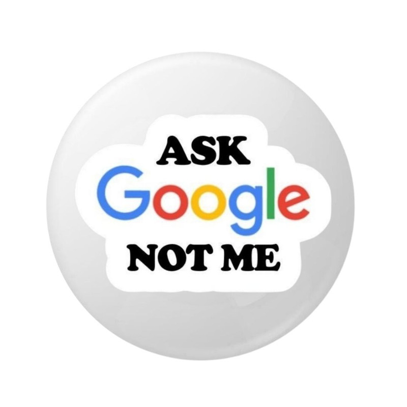 Insigna metalica rotunda 58 mm cu mesaj “Ask Google Not Me”, model text amuzant stil modern