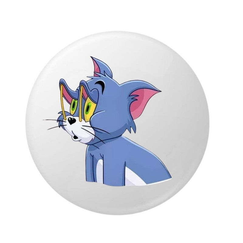 Aceasta insigna rotunda prezinta o ilustratie inspirata din stilul animatie clasica, reprezentand un personaj tip pisica albastra cu expresie surprinsa si detalii grafice accentuate. Culorile vii si liniile bine definite ofera un aspect atractiv, usor de remarcat pe orice tip de accesoriu vestimentar.