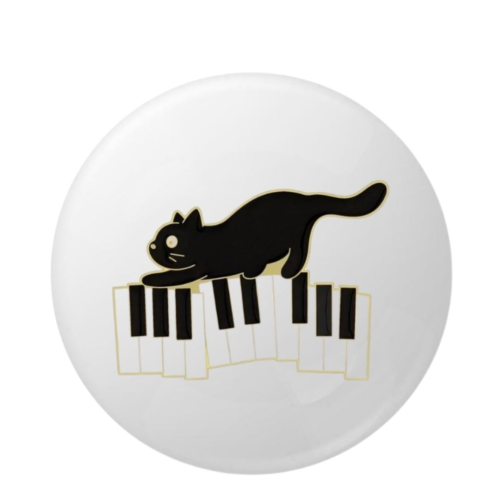 Insigna imbina imaginea unei pisici negre cu simbolul clasic al clapelor de pian, creand un design expresiv si modern. Este potrivita pentru persoanele pasionate de muzica si animale, oferind un detaliu original tinutelor de zi cu zi.