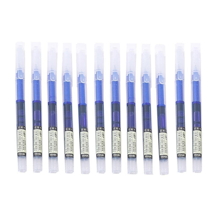 Set 12 pixuri cu bila albastru, varf 0.5 mm, lungime 14 cm, scriere fina, cerneala pe baza de apa, utilizare scoala si birou