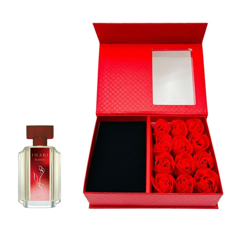 Cutie cadou Love Forever cu 12 trandafiri de sapun si apa de toaleta Avon Imary Queen pentru femei 50 ml, cadou elegant si rafinat