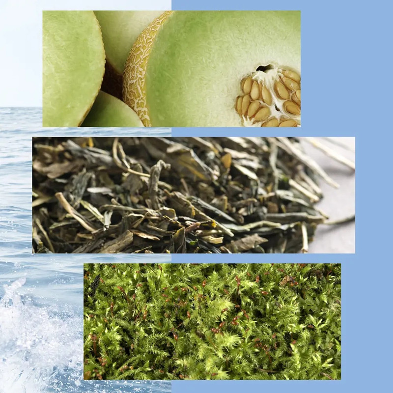 Debutul parfumului este vibrant si racoritor, dominat de bergamota luminoasa, pepene galben proaspat si artemisia aromatica. Aceasta combinatie ofera o explozie de energie si claritate, creand o prima impresie puternica si tonica. Inima parfumului dezvaluie un acord ozonic special, completat de note aromatice de ceai si tarhon, care adauga echilibru, rafinament si o senzatie de prospetime aerata.