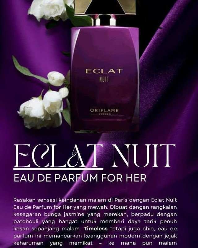 Setul include apa de parfum Oriflame Eclat Nuit pentru femei 50 ml, un parfum sofisticat si seducator, creat pentru femeia care doreste o aroma eleganta si memorabila, potrivita pentru seri speciale sau ocazii importante.