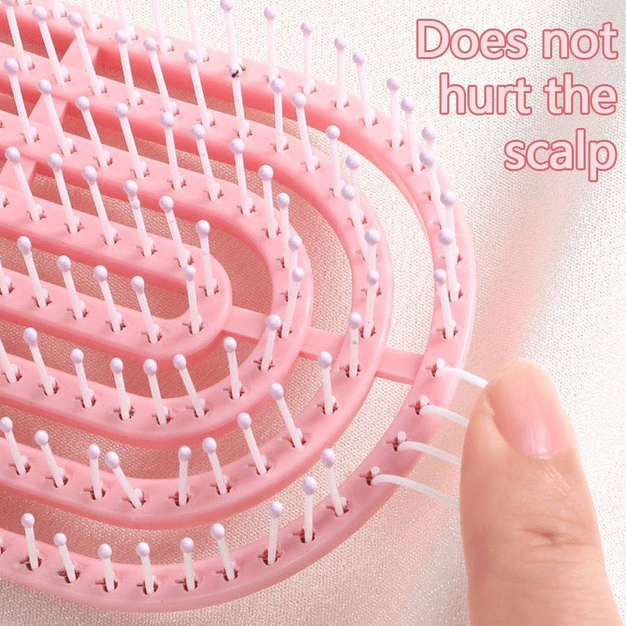 Forma ovală ajută la netezirea firelor și la obținerea unui volum natural, fiind ideală pentru toate tipurile de păr – drept, ondulat sau creț. Perii flexibili, cu vârfuri rotunjite, masează ușor scalpul și descurcă părul fără durere și fără rupere. Aceștia stimulează circulația sângelui și contribuie la menținerea sănătății părului, oferind o senzație plăcută de relaxare la fiecare utilizare.