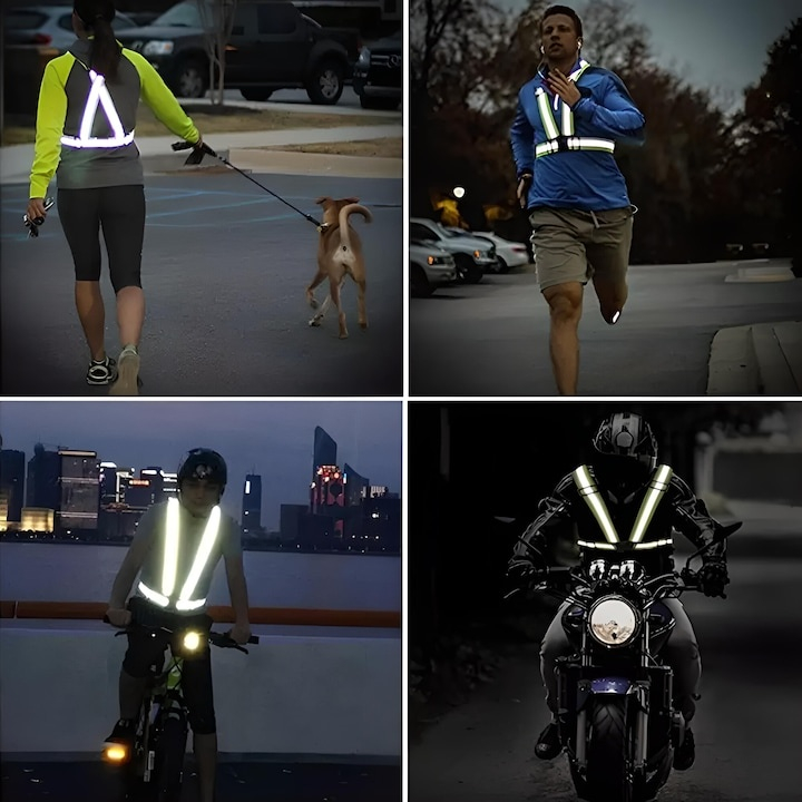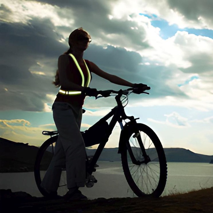 Acest ham reflectorizant reglabil este conceput pentru a oferi vizibilitate maxima si siguranta in timpul activitatilor desfasurate in aer liber sau in trafic. Materialul elastic si benzile reflectorizante de inalta calitate asigura o vizibilitate de pana la 360°, facandu-te usor de observat atat pe timp de zi, cat si pe timp de noapte. Este o solutie ideala pentru ciclism, jogging, drumetii, plimbari, lucrul pe santier sau pentru situatiile neprevazute din trafic.