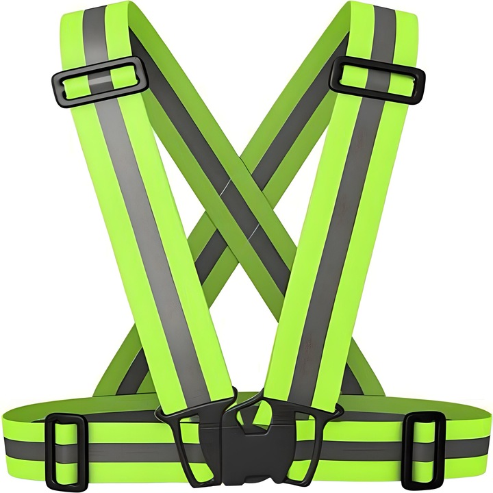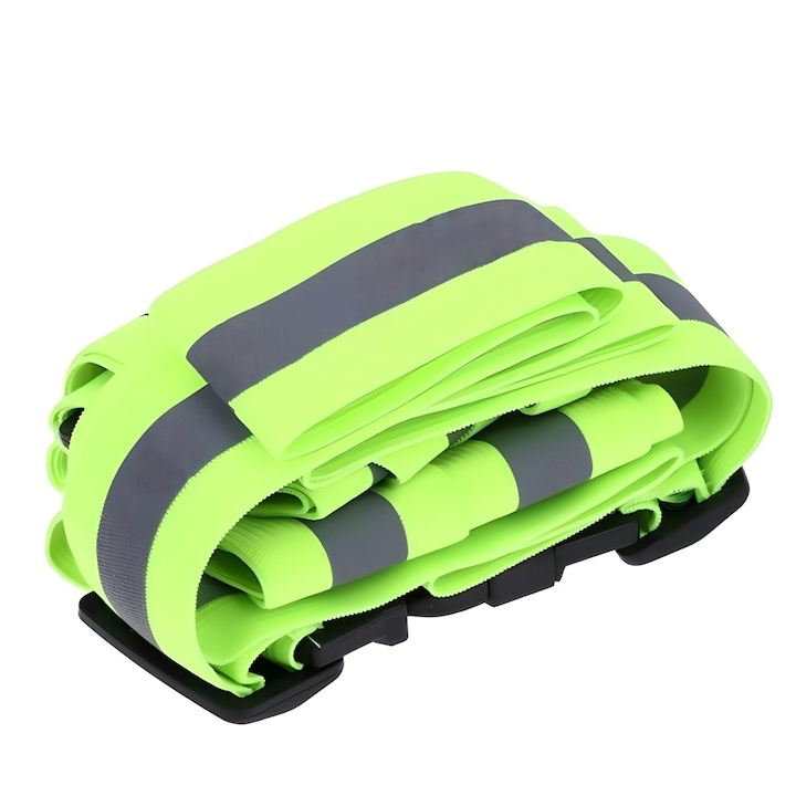 Ham reflectorizant reglabil, vizibilitate 360°, elastic, prindere cu catarama, marime universala, culoare verde neon