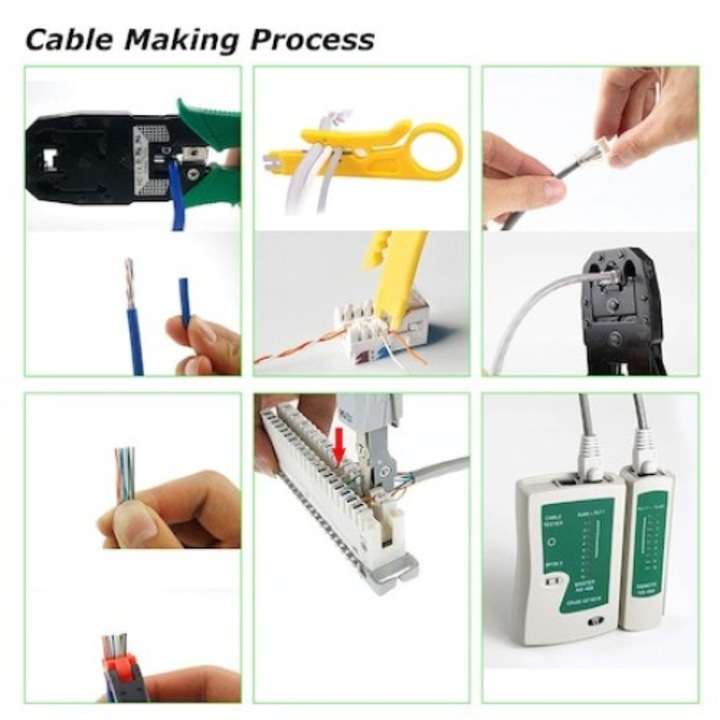 Acest set multifunctional 13 in 1 este conceput pentru realizarea, testarea si repararea retelelor LAN in locuinte, birouri, laboratoare sau ateliere tehnice. Include toate uneltele necesare pentru sertizarea mufelor, verificarea continuitatii cablurilor, dezizolare, instalare si organizare, fiind potrivit atat pentru incepatori, cat si pentru profesionisti.