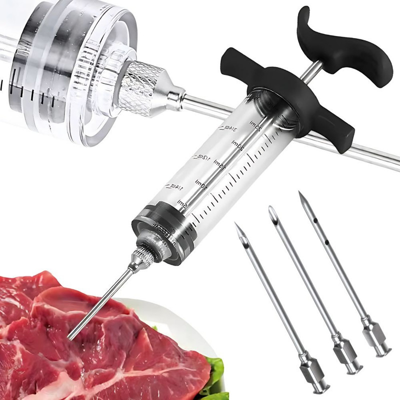 Un instrument esential pentru obtinerea unei carni fragede si aromate, ideal pentru pasionatii de gatit, gratar sau cuptor. Permite introducerea marinadei direct in interiorul carnii, oferind gust intens si uniform in fiecare preparat.
