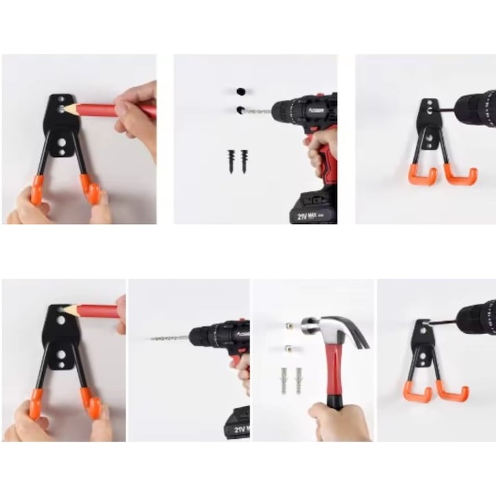 Set 12 carlige metalice perete pentru organizare garaj, suport scule, bicicleta, furtun, montaj inclus, negru portocaliu
