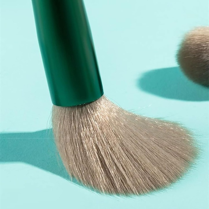 Manerele sunt fabricate din plastic rezistent, usor si ergonomic, permitand o prindere sigura si confortabila chiar si in utilizari indelungate. Designul in nuante elegante de verde confera un aspect modern si rafinat, potrivit pentru orice masa de machiaj sau kit profesional.