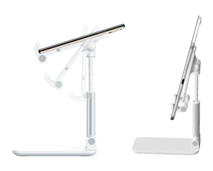 Acest suport reglabil ofera stabilitate, flexibilitate si protectie pentru dispozitivele tale. Structura solida si baza larga asigura fixare sigura pe birou sau masa, iar mecanismul pliabil permite transport rapid si depozitare usoara.