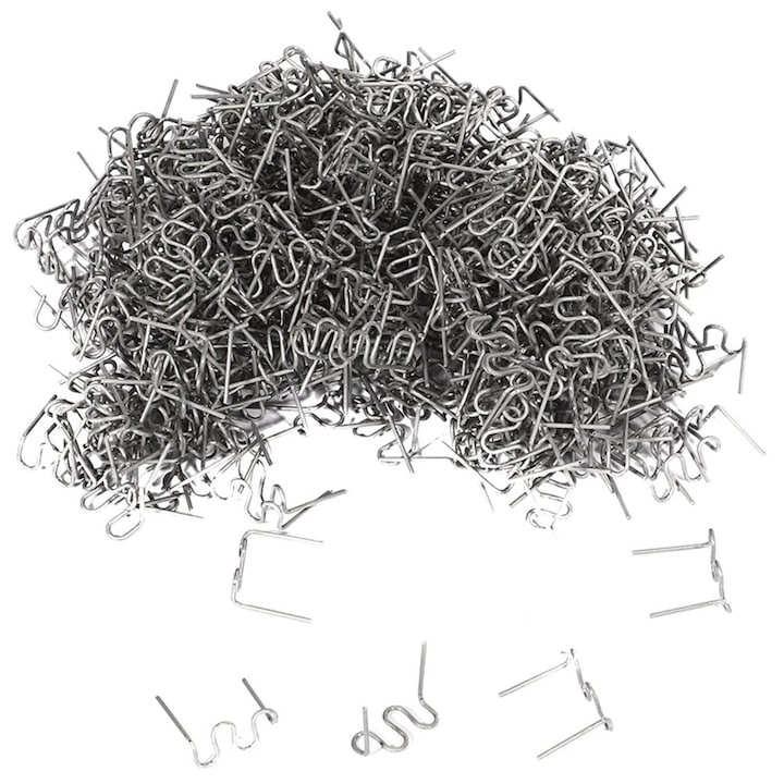 Set 200 capse sudura plastic model S, grosime 0.8 mm, reparatii bara auto si fisuri, otel tungsten, pentru pistol lipit