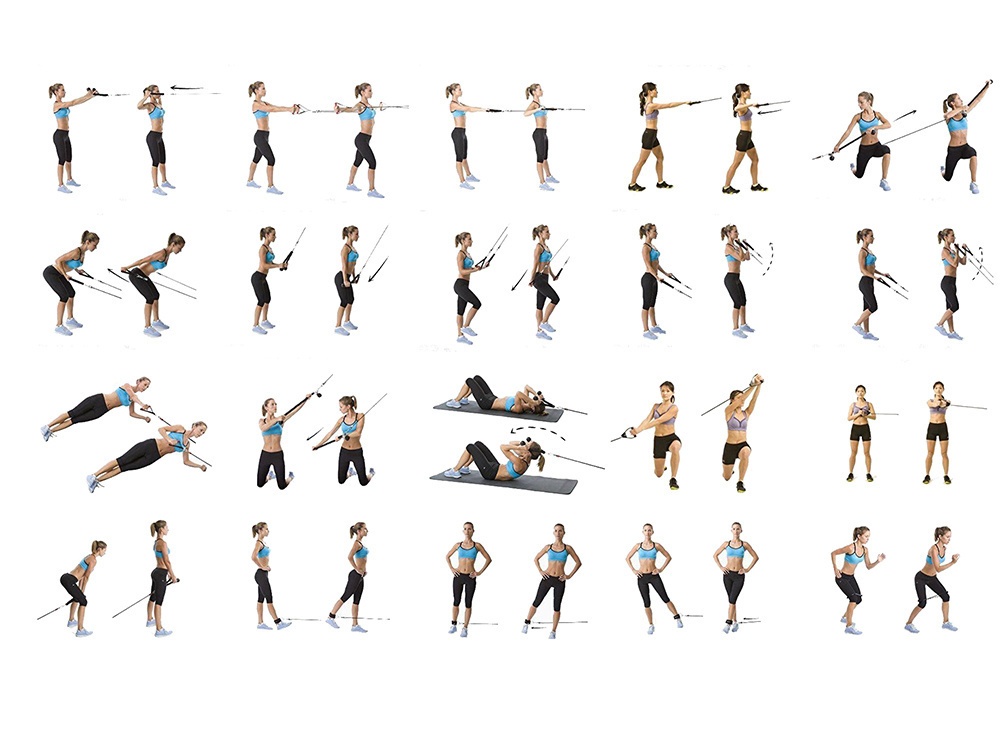 Accesoriile incluse, precum manerele antiderapante, suporturile pentru picioare si sistemul de prindere pentru usa, ofera posibilitatea de a efectua o gama variata de exercitii pentru toate grupele musculare.