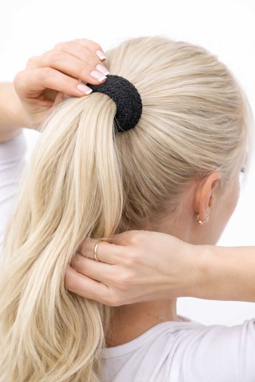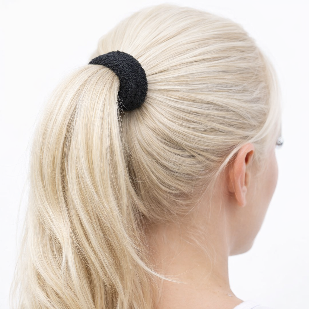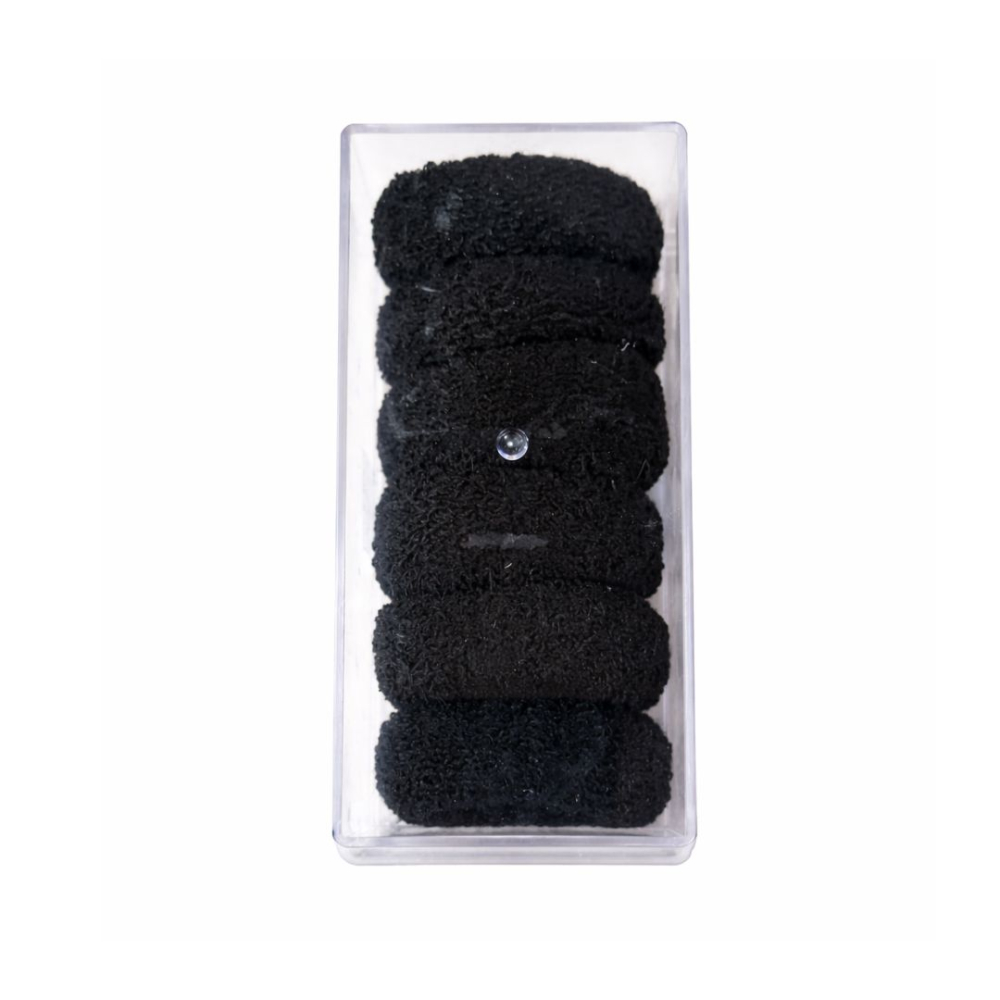 Setul cu 6 elastice negre groase de 4 cm este ideal pentru fixare sigura si confortabila in fiecare zi. Materialul textil elastic asigura sustinere fara sa agreseze firul de par.