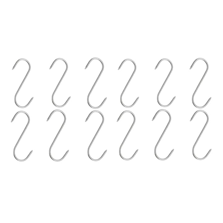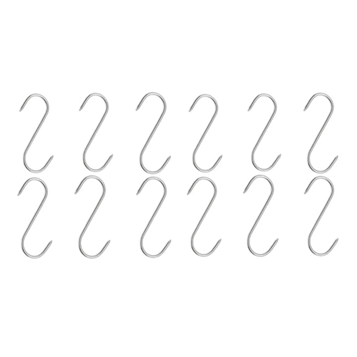 Carligele din inox completeaza setul, fiind ideale pentru agatarea carnii sau organizarea ustensilelor, contribuind la un flux de lucru mai eficient si mai sigur.