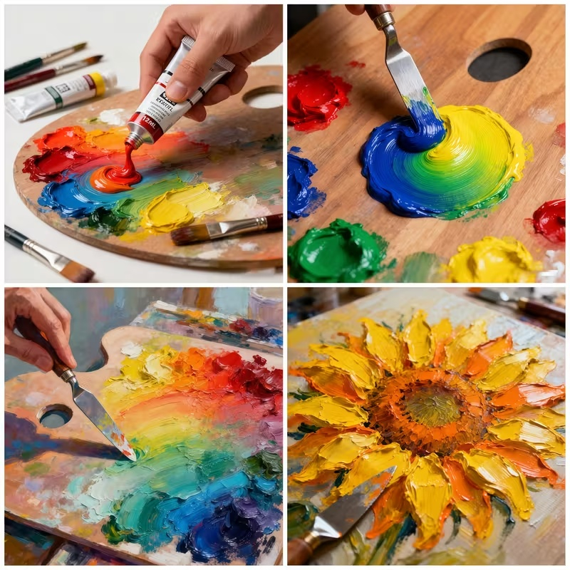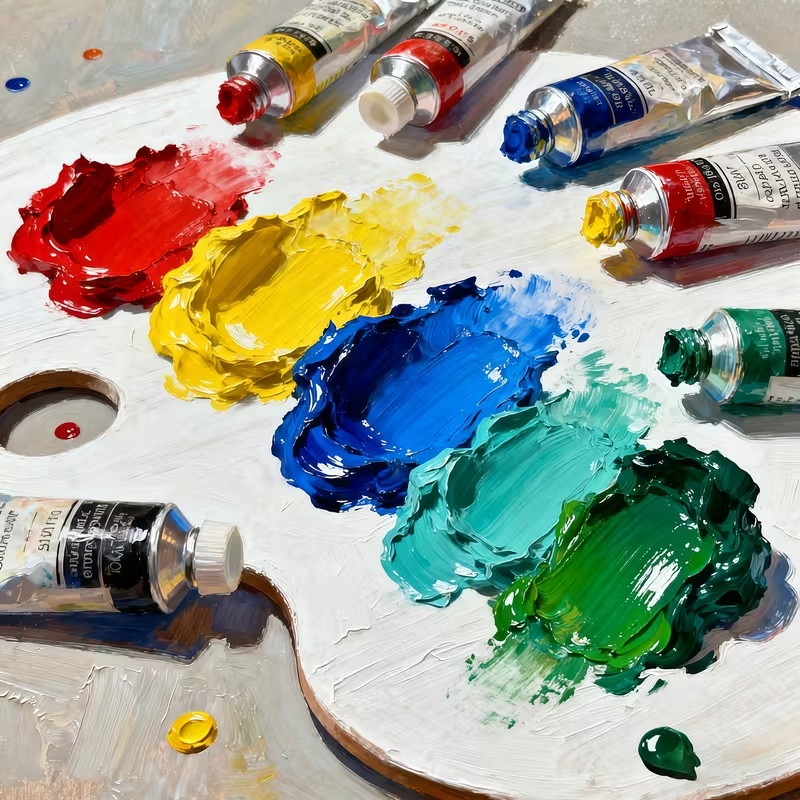 Paleta inclusa in set contine 12 culori esentiale si complementare, ideale pentru amestecuri cromatice creative. Aceasta selectie permite realizarea unei varietati de tonuri, umbre si efecte artistice, fiind potrivita pentru tehnici clasice sau pentru experimente moderne de pictura.