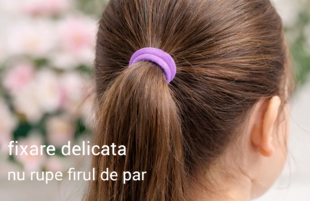 Acest set de elastice pentru par textile este conceput pentru prinderea delicata a parului, fiind potrivit pentru utilizare zilnica acasa, la scoala sau la gradinita. Materialul textil moale ofera fixare sigura fara sa rupa firul de par, fiind confortabil pentru copii si adulti.