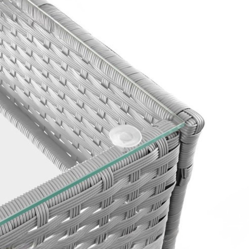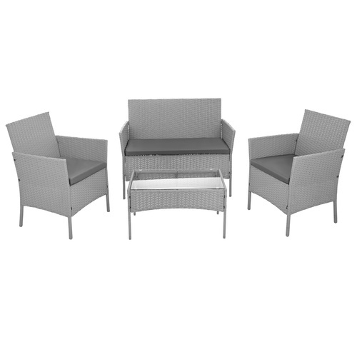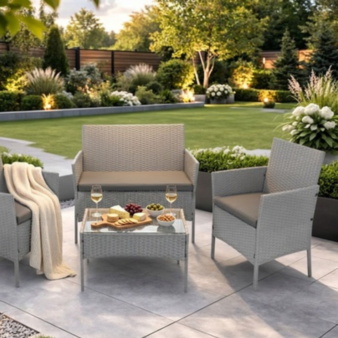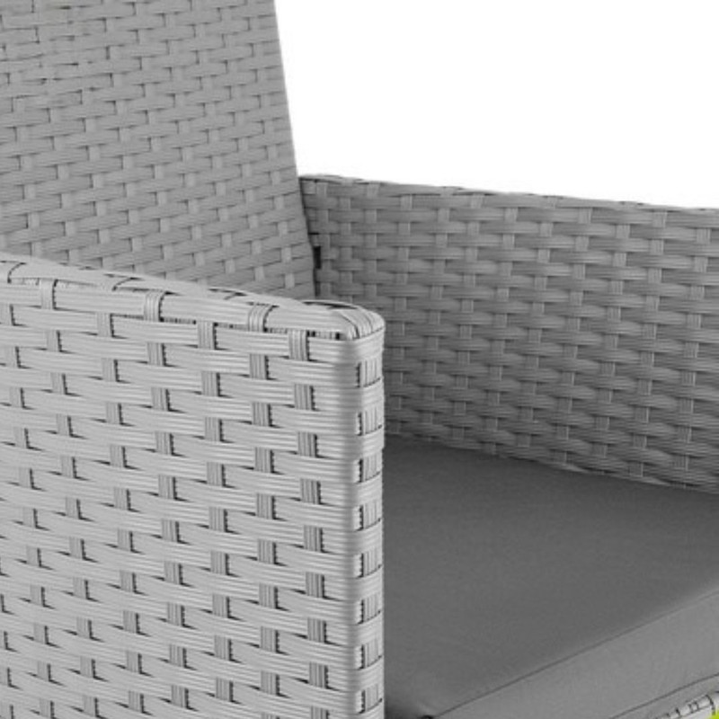 Amenajeaza un spatiu exterior modern si confortabil cu acest set complet de mobilier pentru gradina din ratan gri deschis.
