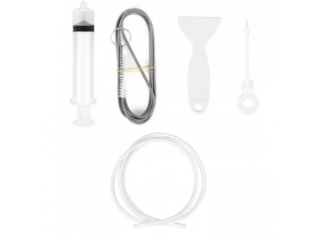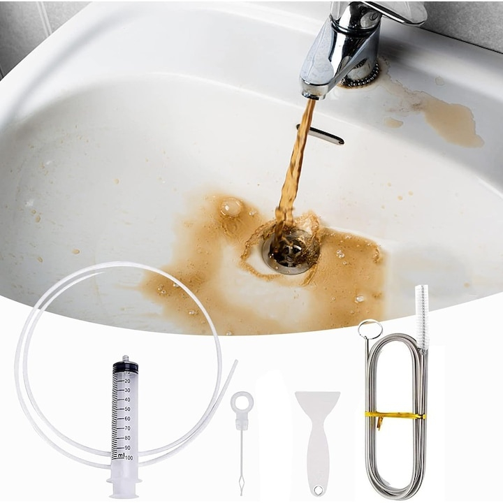 Setul include mai multe accesorii utile, precum seringa cu furtun flexibil, perie din nailon, ac de curatare si racleta, fiecare avand un rol specific in procesul de curatare. Seringa permite injectarea apei sau a solutiilor de curatare in conducte, facilitand indepartarea murdariei si a reziduurilor. Furtunul flexibil ajunge cu usurinta in spatii inguste, oferind acces acolo unde metodele clasice nu sunt eficiente.