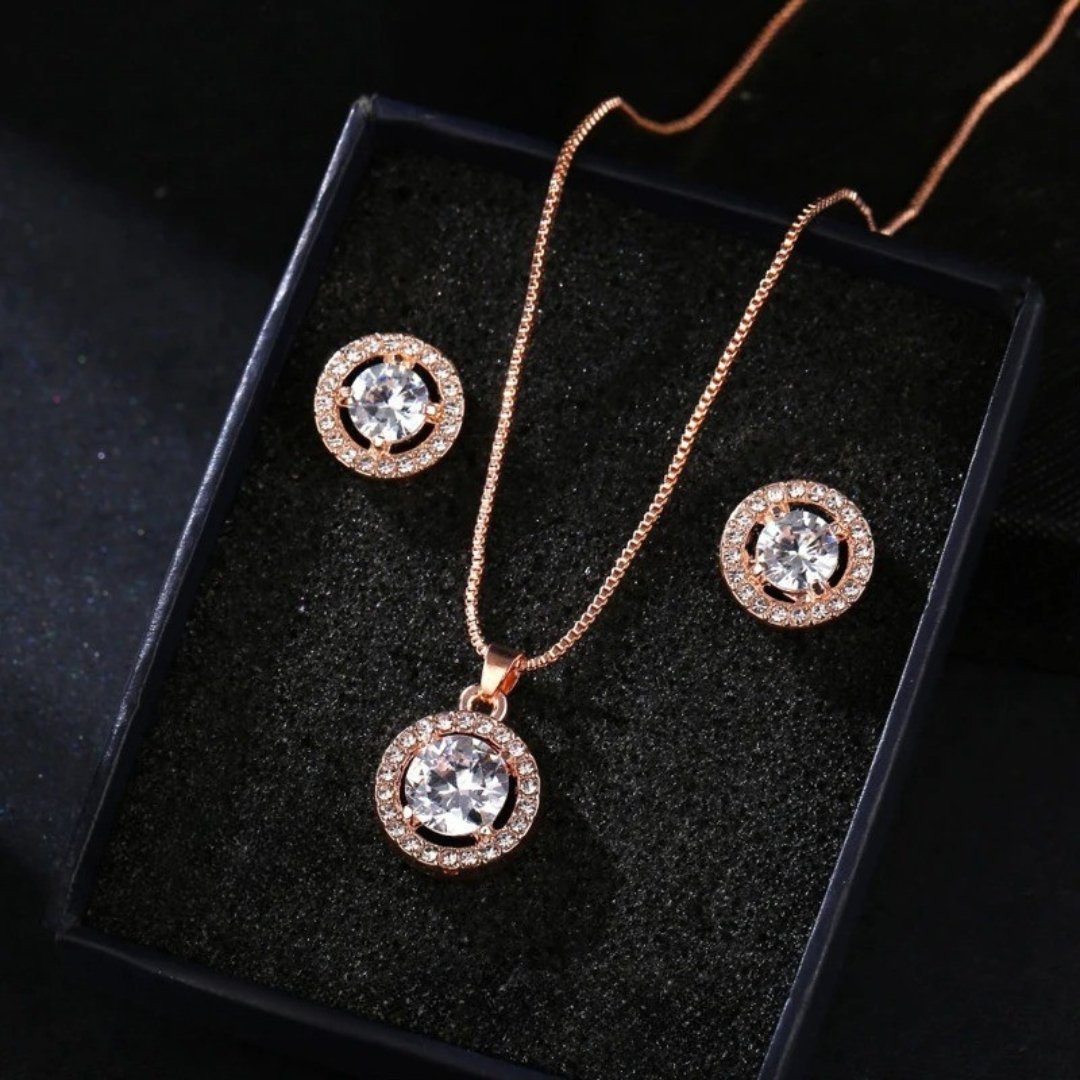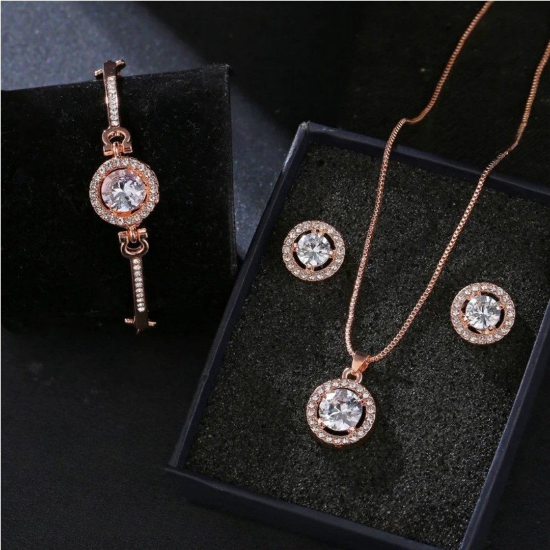 Designul sofisticat și nuanța caldă de aur roz conferă un aer de lux și feminitate, potrivit atât pentru ocazii speciale, cât și pentru completarea unei ținute de zi. Fiecare piesă este gândită pentru armonie și echilibru vizual, iar cristalele oferă o strălucire delicată ce atrage privirile.